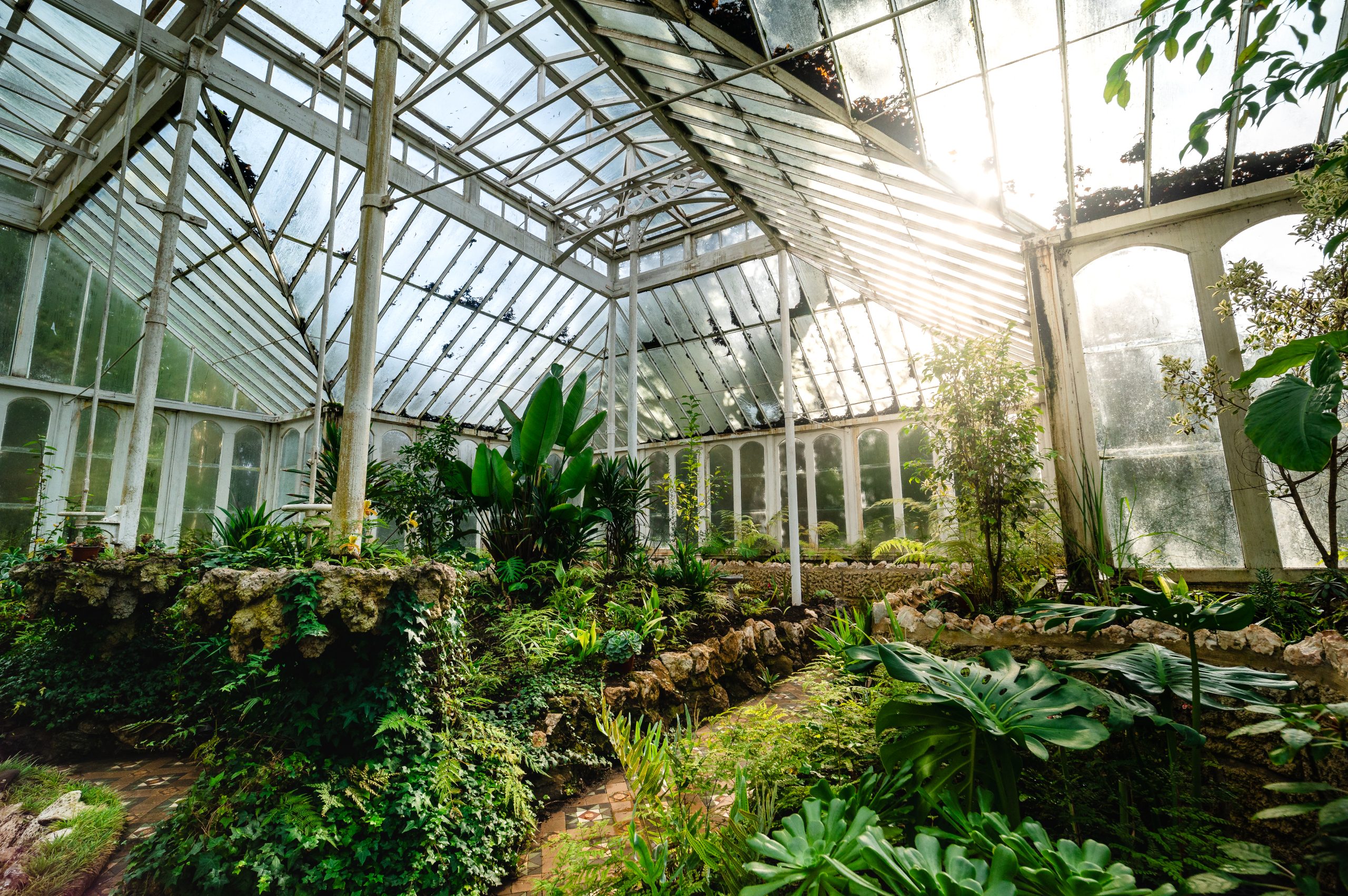más de 2 mil especies, entre plantas, árboles y flores de los cinco continentes, pavos reales y una colección de esculturas de fierro forjado francés que datan del año 1870.